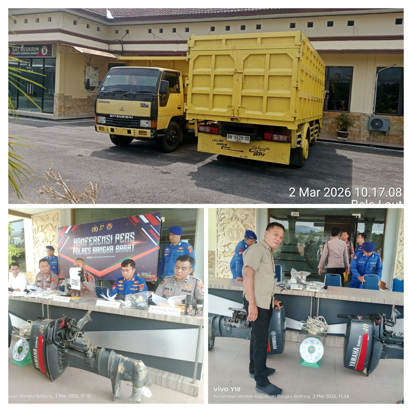 Kapolres Bangka Barat AKBP Pradana Aditya Nugraha menjelaskan, pengungkapan kasus ini berawal dari penangkapan tiga orang terduga pelaku oleh Tim Hiu Barat Sat Polairud pada Kamis (26/2/2026) sekitar pukul 01.00 WIB di kawasan Pantai Enjel, Dusun Air Putih, Kecamatan Muntok, Kabupaten Bangka Barat.